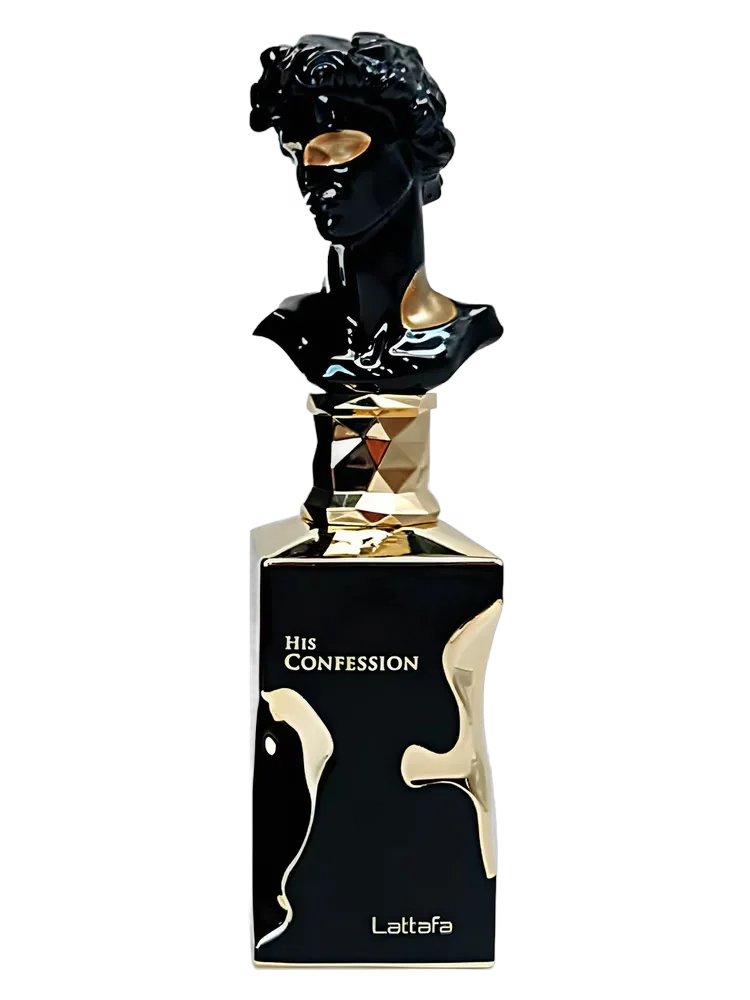 His Confession by Lattafa Perfumes is a Oriental Woody fragrance for men. Top notes are Lavender, Cinnamon and Mandarin; middle notes are Iris, Benzoin, Cypress and Mahonial; base notes are Vanilla, Tonka, Amber, Incense, Cedarwood and Patchouli.