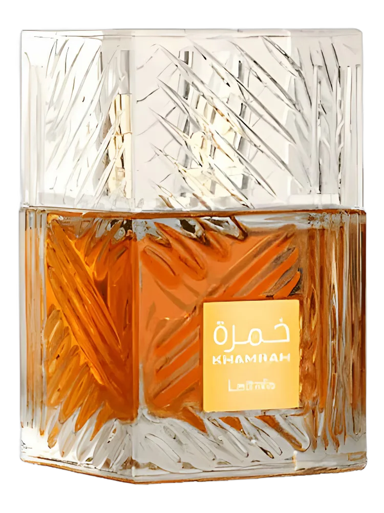 Lattafa Khamrah is a luxurious oriental-spicy unisex perfume that combines precious spices, the warmth of woody notes and the softness of vanilla. The fragrance is released by the Arab luxury perfume brand Lattafa Perfumes and comes in a luxurious crystal bottle. The top accord of Khamrah is the citrusy freshness of bergamot framed by the warm, velvety spice of cinnamon and refined clary sage. The heart of the perfume resonates with the delightful creamy smell of praline, melting in a fragrant haze of sweet fruity notes and tuberose floral nuances. Whereas the base of Lattafa Khamrah delivers a sumptuous aromatic trail that blends the sensual sweetness of vanilla with spicy precious woods, sweet smoky oud, smoky aromatic myrrh, spicy tonka bean and vanilla resinous benzoin, shimmering softly in the beams. refined amber.